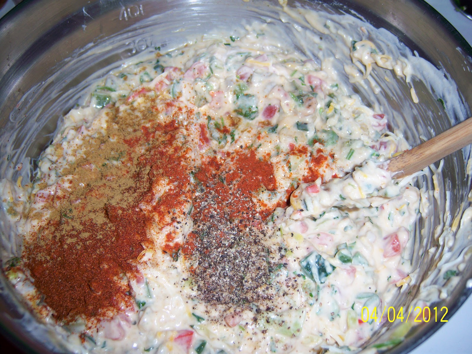- IN THE SAME BOWL, ADD THE CAN OF ROTEL (THIS MIX SHOULD BE THE CONSISTENCY OF PANCAKE BATTER. YOU WANT TO BE THICK BUT NOT TOO THICK)